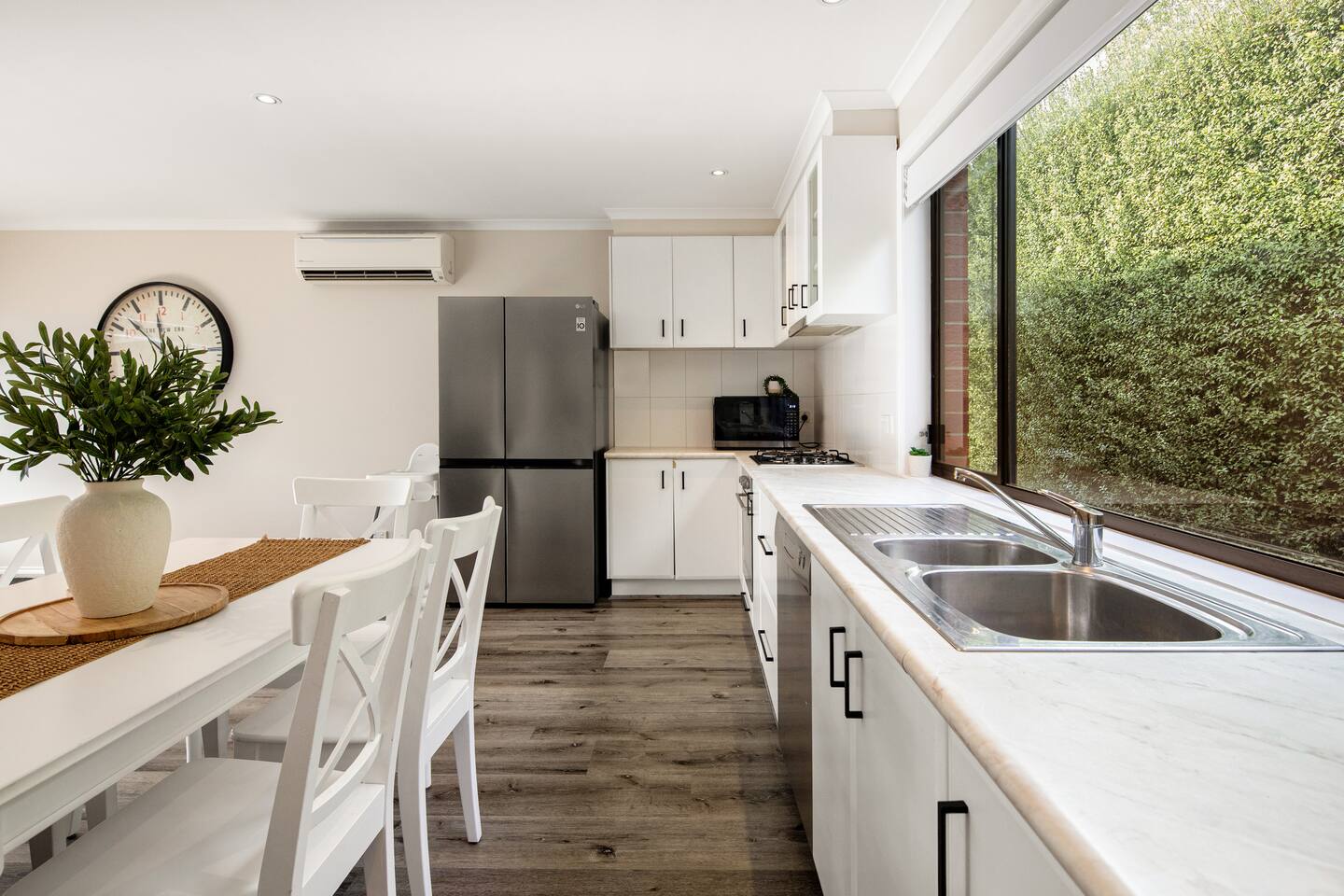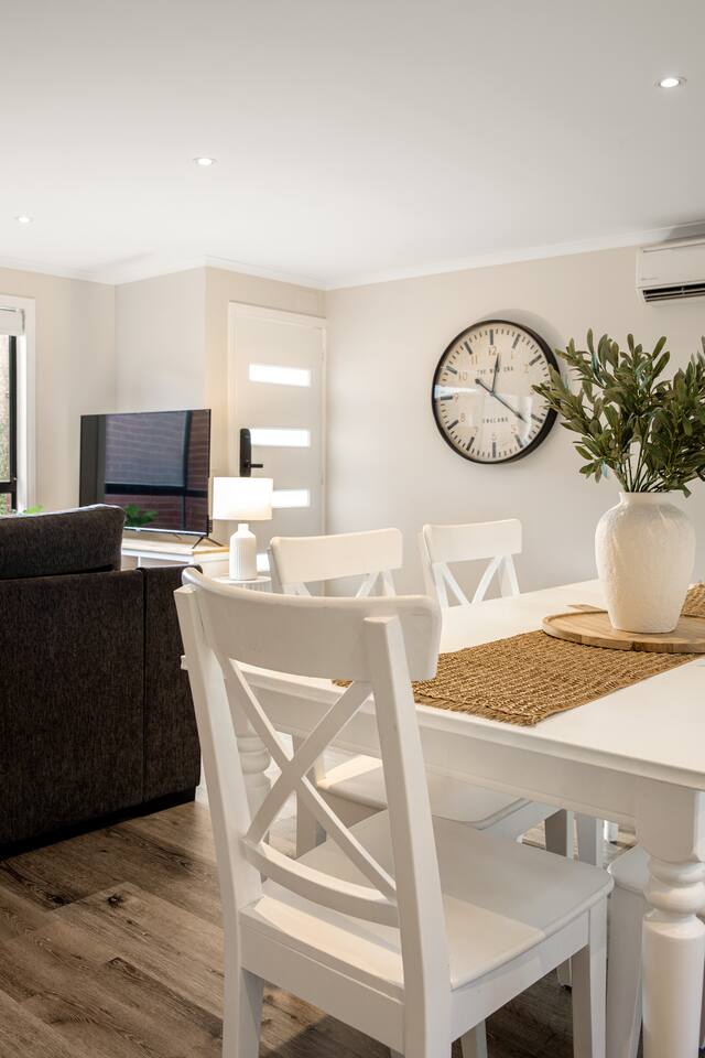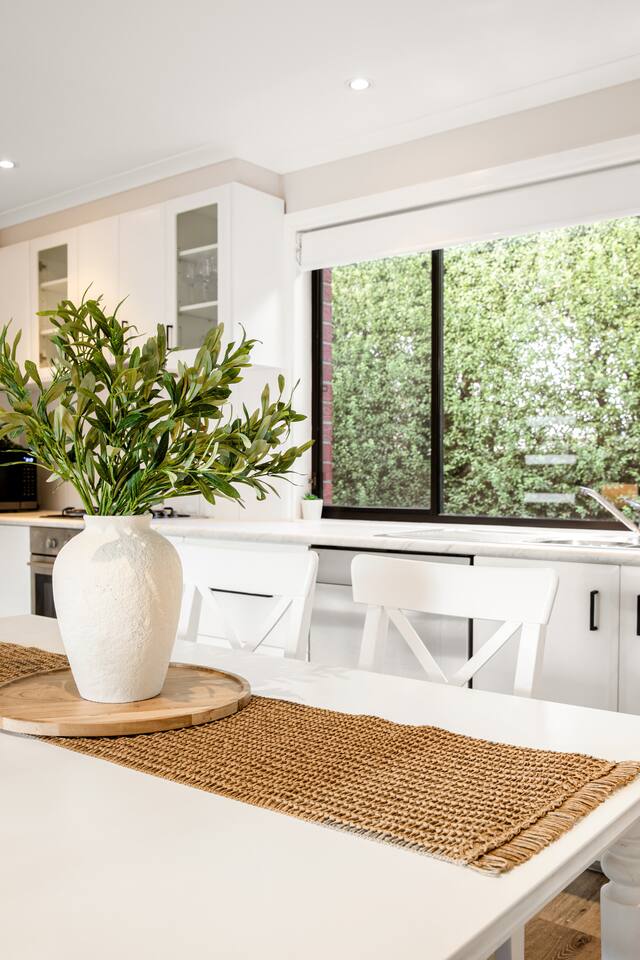 This is your home away from home - perfect for recharging, exploring, or getting things done! OUR NEIGHBORHOOD Our house is nestled in the vibrant and welcoming community of Delahey, a suburb known for its friendly atmosphere and convenient location. You’ll find a large range of retail, cafes, and restaurants at the bustling Watergardens Shopping Centre just a short drive away, perfect for grabbing coffee, enjoying a meal, or picking up essentials. For outdoor lovers, there are nearby parks (Organ pipes national park, Brimbank park etc) and green spaces where you can relax, go for a walk, or enjoy a picnic. The area is also well-connected, with easy access to public transport and major roads, making Melbourne’s CBD and surrounding attractions just a short drive away. Whether you’re here to explore the city, enjoy local eats, or simply unwind in a peaceful neighborhood, Delahey offers a great balance of convenience, community, and charm. LIVING ROOM Relax and unwind in the cozy living area featuring a 60" Chromecast-enabled Smart TV and large comfy 6 seater lounge, and put your feet up after a day out. Stay comfortable with heating / cooling in the living areas. KITCHEN Cook up your favorite meals in the fully equipped kitchen, complete with oven, stovetop, microwave, large fridge/freezer, kettle, toaster, Nespresso pod coffee machine. Whether it’s a quick breakfast or a full dinner, you’ll have everything you need. Complimentary kitchen amenities include an initial supply of quality coffee pods, tea, sweeteners, sugar, milk, olive oil and salt & pepper. BEDROOMS All bedrooms feature comfy queen-size beds, bedside table and lamp and 60" Chromecast-enabled Smart TV for your convenience (two bedrooms feature wardrobe with hangers). Freshly white laundered bedding linens and quilt are provided, with a choice of soft/firm pillows and an iron and ironing board to keep you looking sharp. A fluffy white bath towel is provided for each guest. Portable cot with pillow, mattress, and comforter available for your use. Extra costs for use of bunk beds > This accommodation is available for the base price that includes 6x guests making use of 3x queen beds. > Up to 2x single bunk beds are available and there is a $25 fee per bunk bed used for each night of booking (Our house keeping staff charge us for the additional work to wash, dry, and change the linen for each extra bed used). > Please note: Our house keeping staff check all bunk beds and any that have been played in, slept in, messed up or otherwise made unsanitary will be cleaned and remade and charged to your booking at the end of the stay. If you'd would like to use up to 2x extra beds you can choose to: > Pay upfront, by increasing the max guest/bed count to either 7 or 8 when you book, or > Pay after your booking, we will add the costs for any extra beds which have been used to your final booking payment DINING AREA Gather around the dining table and enjoy delicious meals and conversation or plan your next adventure! High-chair is available for the kids. BATHROOM Bathroom is equipped with a refreshing hot shower, soft hand towels and face washers, and luxurious body wash, shampoo, conditioner and hand wash crafted with ancient Australian botanicals by Rohr Remedy. Pamper yourself with a hot bath after a long day. Hair dryer also available for your use. LAUNDRY Enjoy the convenience of a large 12kg clothes washing machine and 9kg clothes dryer with a clothesline in the courtyard. PATIO Indulge in alfresco meals in your outdoor courtyard with dining table and chairs. PARKING Hassle-free parking for 2-3 cars across the front yard and quiet street. Perfect for families, couples, or business travelers looking for comfort and convenience during their stay! EXCITING LOCAL ATTRACTIONS If you are looking for some exciting local attractions to explore, a selection can be found below: Brimbank Aquatic and Wellness Centre > Family fun with 50m pool, kids splash park and slides, spa etc Brimbank Park > Haven for kids creative play Grazeland > Playground for foodies Ice skating at O’Brien Icehouse > Skating is one of Melbourne's best activities for both novices and pros alike! iFLY Melbourne Indoor Skydiving > Suit up for some epic fun for all ages from 3 to 100 year olds! Jawbone Marine Sanctuary > Haven for coastal and marine life Louis Joel Gallery > Bustling Art community Maribyrnong River Trail > Walking or riding trail following the Yarra River Melton Botanic Garden > One-kilometre beautiful lake walk Newport Railway Museum > Largest collection of steam locomotives Point Cook Coastal Park > Perfect place for a family picnic Point Cook RAAF Airforce Museum > Over 40 aircraft on display including FA-18 Hornet, F-4E Phantom, F-111 Aardvark Bomber, C-130 Hercules, UH-1B Iroquois Helicopter, Mirage, Tiger Moth, Canberra, Boomerang etc Queen Victoria Night Markets > Over 60 retail stores and stalls offering one-of-a-kind treasures! Scienceworks > Melbourne's industry, heritage and applied technology in one place Seaworks Maritime Precinct > Seaworks Maritime Museum Werribee Park and Mansion > Explore the heritage-listed Werribee Mansion Werribee Open Range Zoo > Embark on an African adventure You Yangs Regional Park > Magnificent views, birdlife and for bush walks and picnics DELICIOUS LOCAL EATS If you are looking for some delicious local restaurants to try, a selection can be found below: Middle-Eastern > Arabian Grill > Savor the Flavors of Arabia in the Heart of Maidstone! Chinese > Ai Hue Restaurant > Traditional Chinese Clay Pot Rice and HongKong Stir Fried Dishes Fish & Chips > Blue Marlin > Fish & Chips and Burgers done different Indian > Grand Restaurant > Delicious Indian and Pakistani Cuisine! Italian > Slices > Pizza, pasta and classic breakfasts at a large eatery, plus a play area and drive-thru takeaway. Mexican > Zambrero > Feel Good restaurant, serving Mexican food differently! Turkish > Galata Kebab and Grill > Authentic Turki